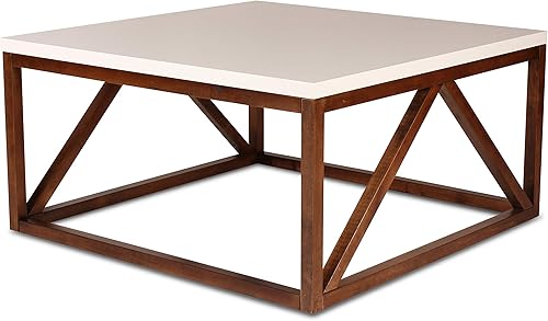 Kate and Laurel Kaya Two-Toned Wood Square Coffee Table with White Top and Walnut Brown Base