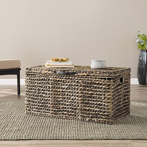 Southern Enterprises Bruneau Water Hyacinth Cocktail Storage Trunk Coffee Table, Brown